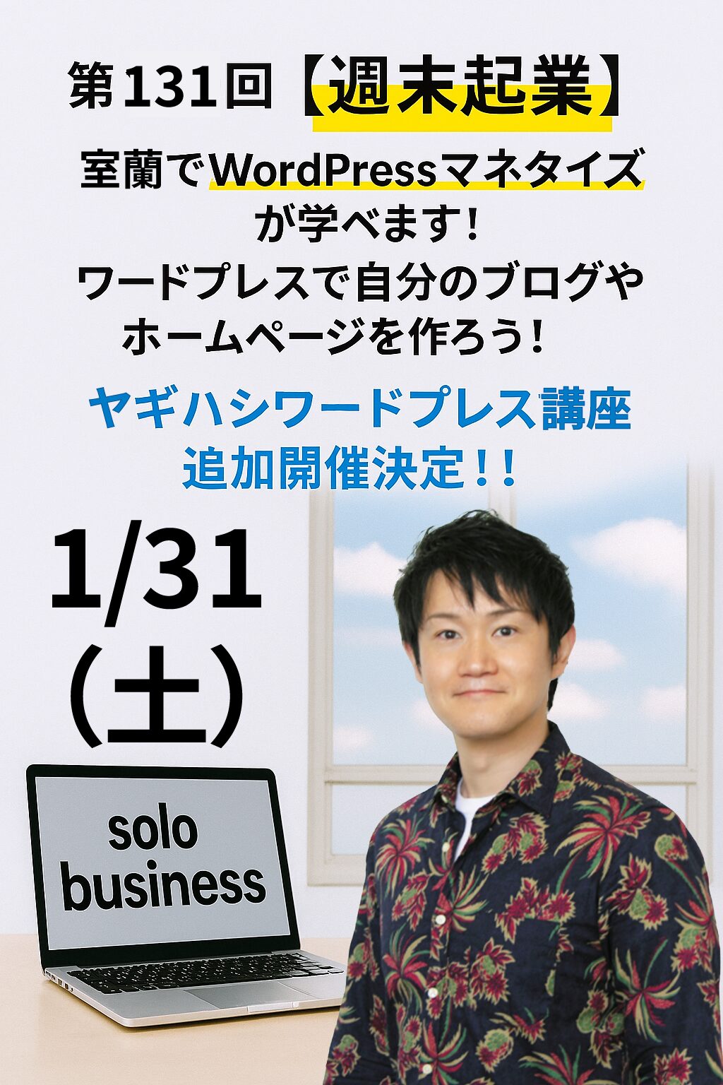 第78回【週末起業】室蘭でWordPressマネタイズが学べます。