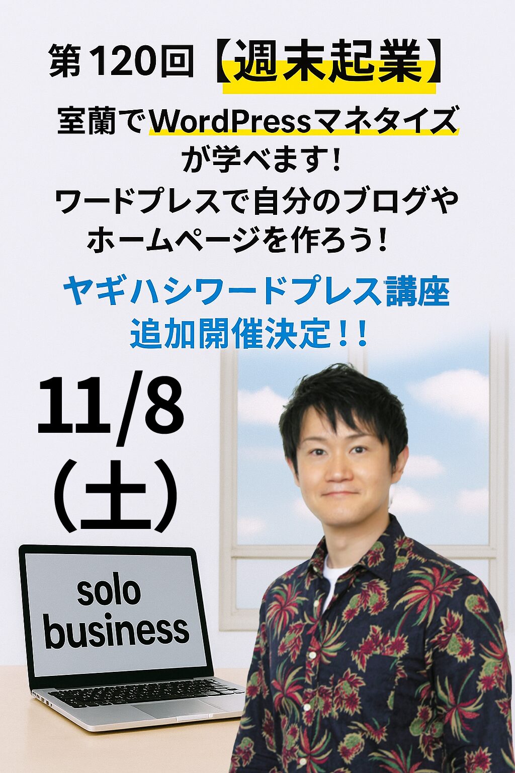 第120回【週末起業】室蘭でWordPressマネタイズが学べます。