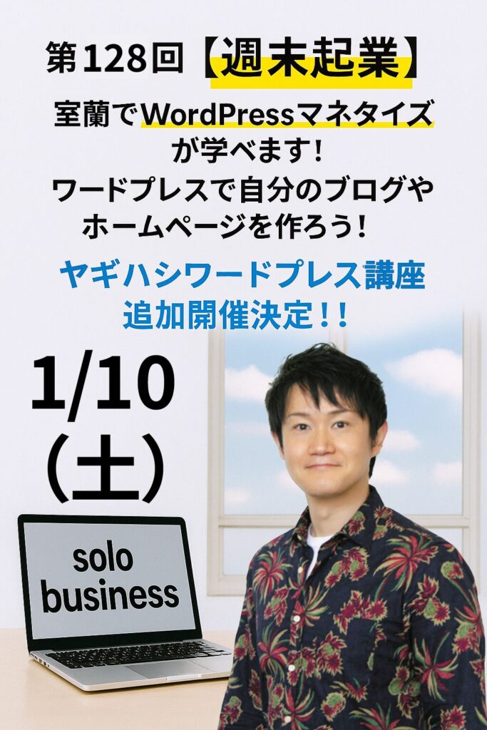 第128回【週末起業】室蘭でWordPressマネタイズが学べます。