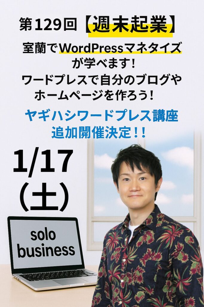 第129回【週末起業】室蘭でWordPressマネタイズが学べます。