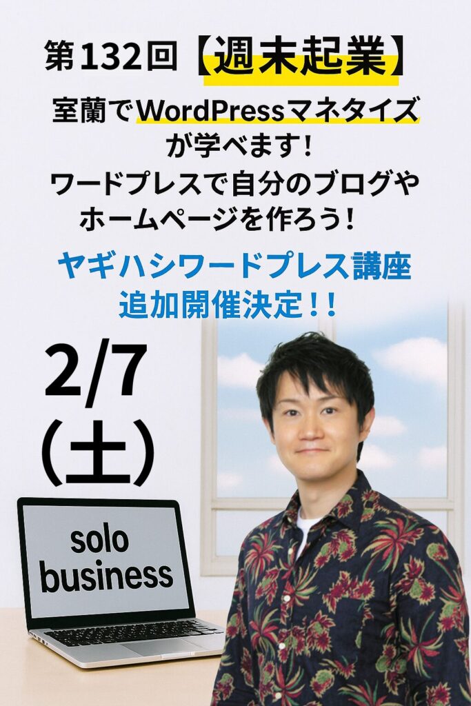 第132回【週末起業】室蘭でWordPressマネタイズが学べます。
