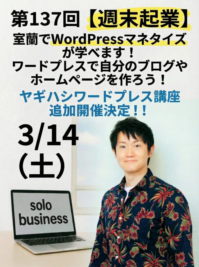 第137回【週末起業】室蘭でWordPressマネタイズが学べます。